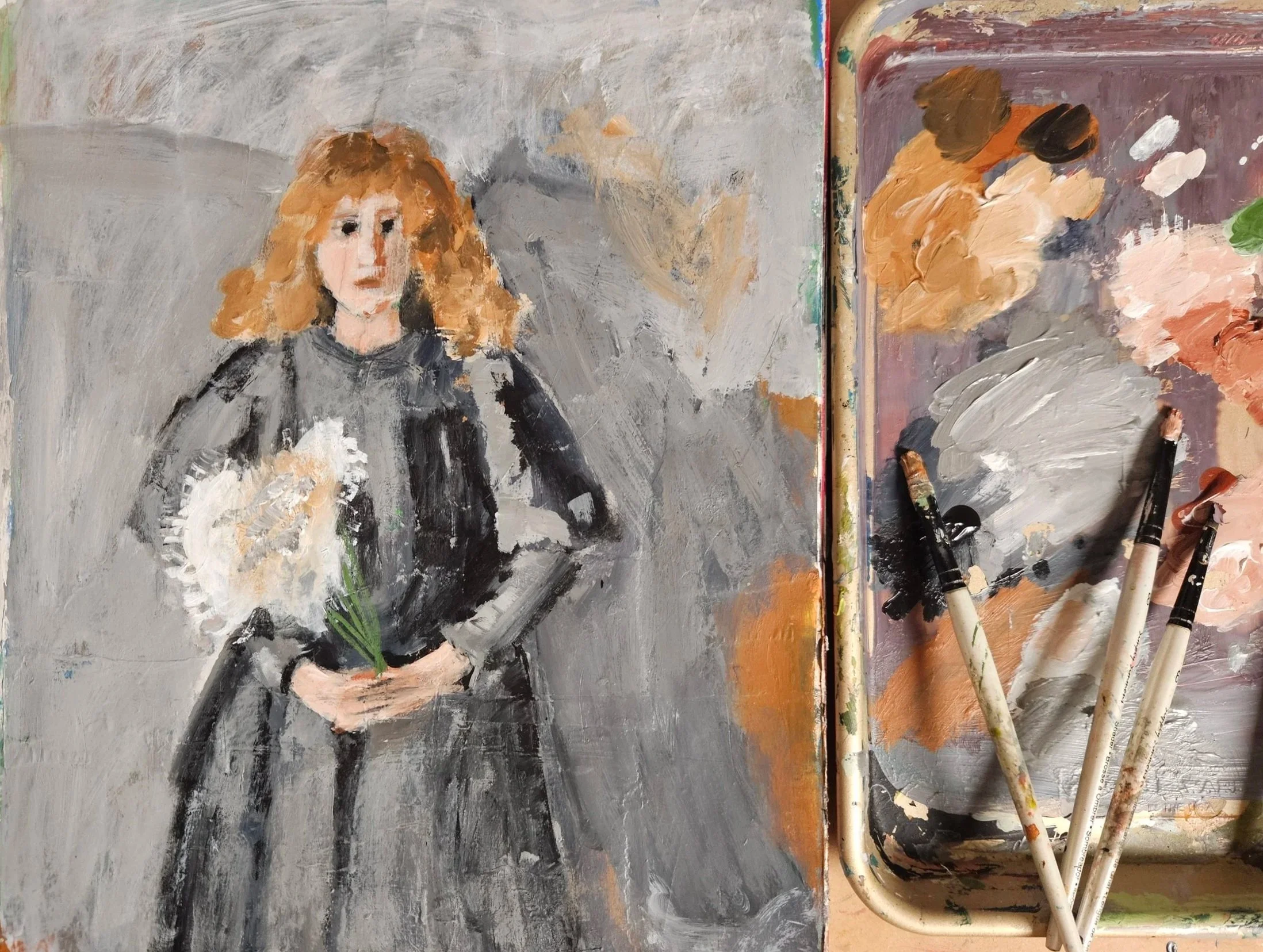 I have attempted a very quick study of her most famous painting, the 1894 portrait Girl with Chrysanthemums (oil on cardboard). It currently hangs in the National Museum of Krakow.
