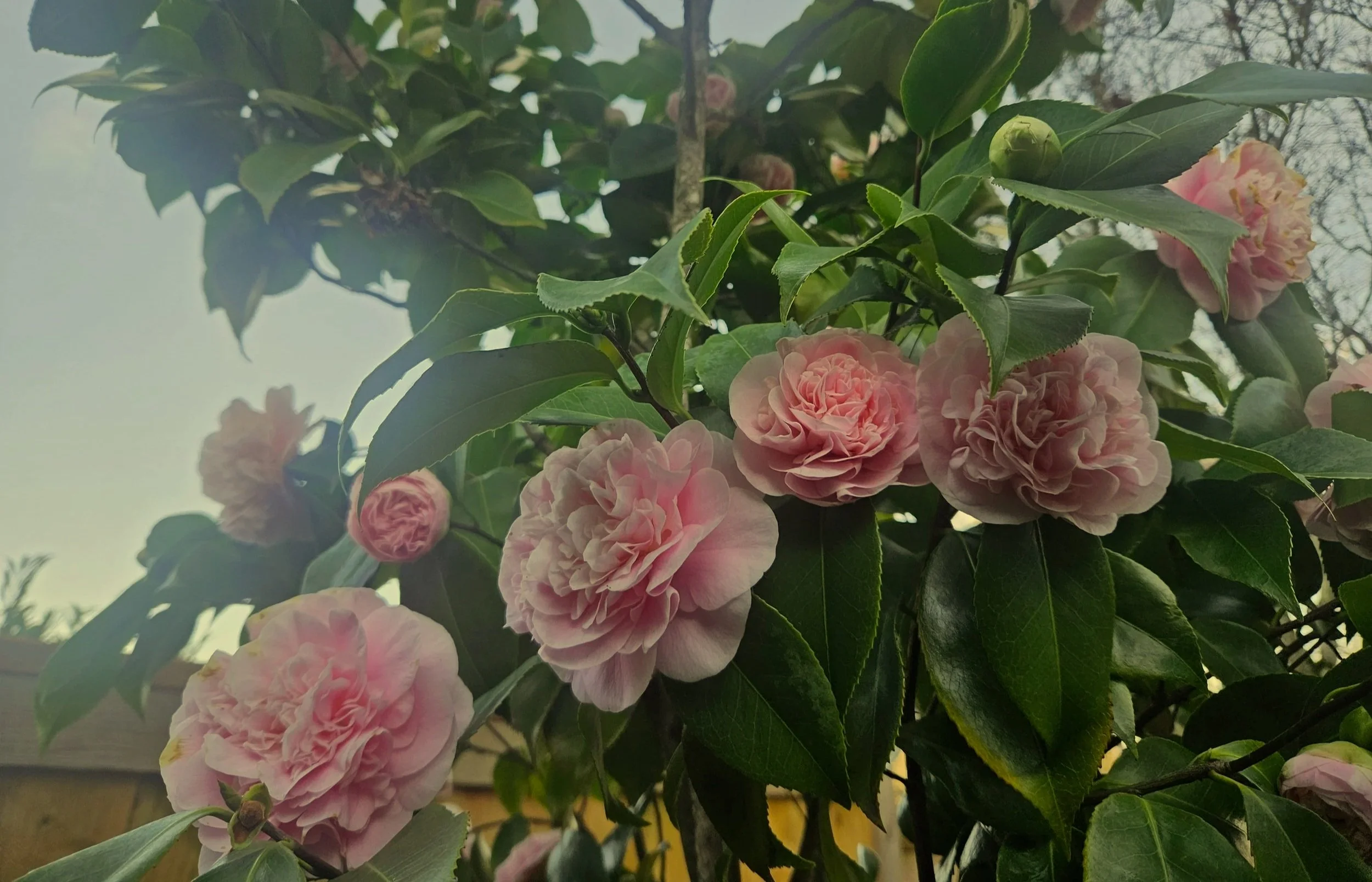 I know I wrote effusively about this camellia last January, expounding on the shocking nature of the blooms. And once again, despite my best attempts to find another plant, shrub, or tree, it comes back to this. Let’s just say if blooming were an Olympic sport, my beloved winter flowering camellia would be on the podium.