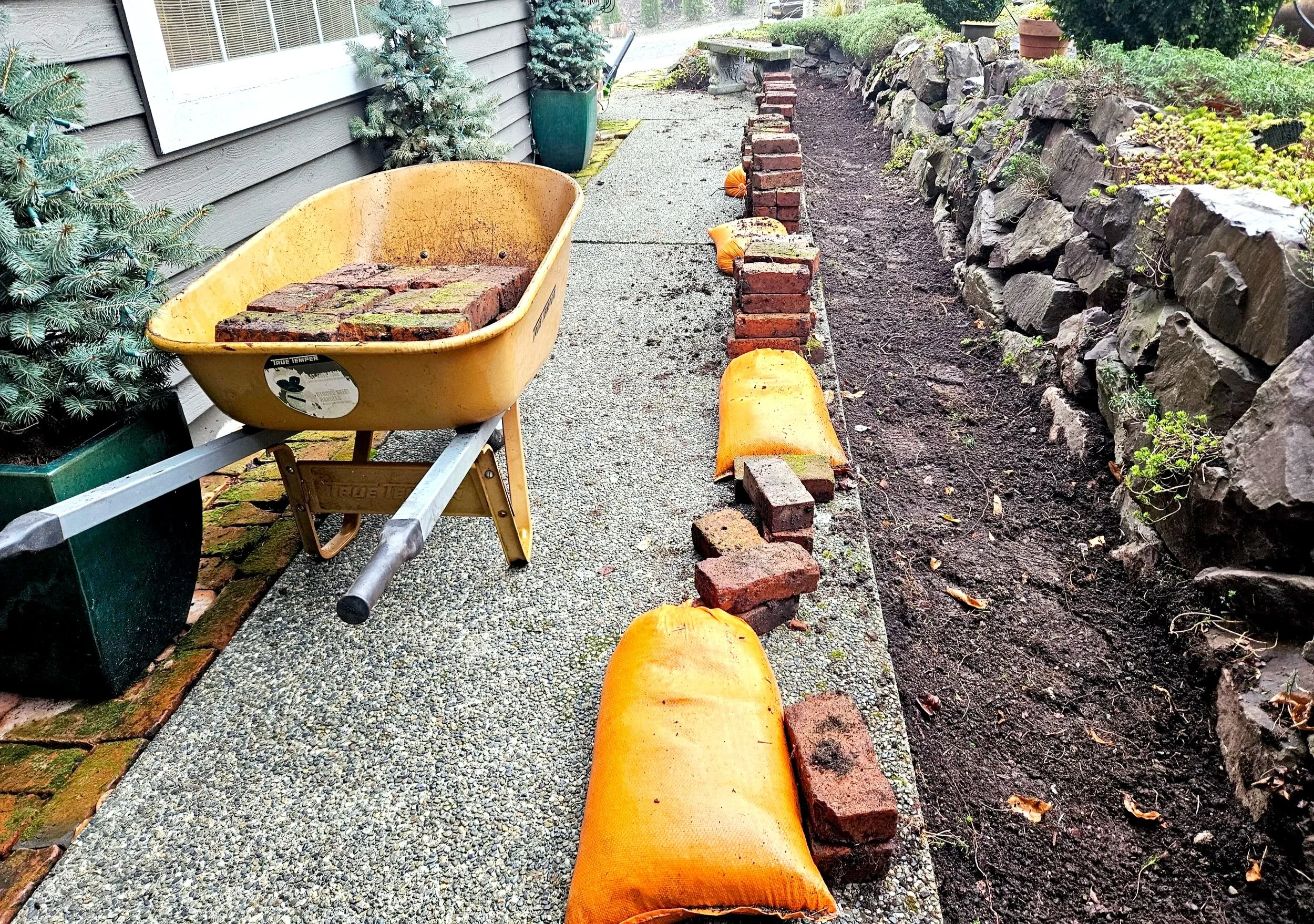 Lest you get the wrong idea that I am inside all winter, paintbrush in hand, contemplating the next grand masterpiece, I offer you this image. Despite my absence from the photo, I guarantee you that a moment before, I was chiseling up old bricks. This hands-and-knees work is better suited to a 30-year-old. My back agrees, but for the time being chooses silence over strife. Prone to the dramatic, trowel in hand, the song, “Working in a Coal Mine,” comes to mind. That’s a bit extreme because, well, I’m not underground, am I? Meanwhile, Fitbit buzzes, confirming that this counts as exercise, so I find comfort where I can.